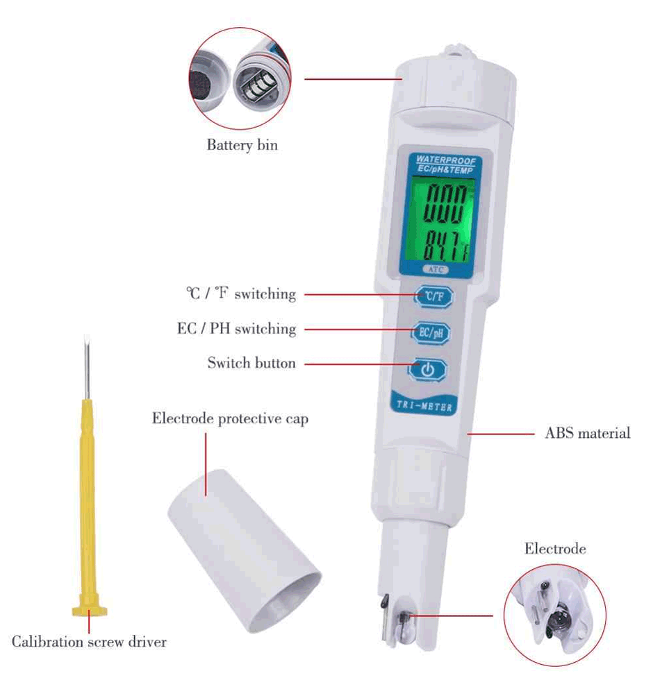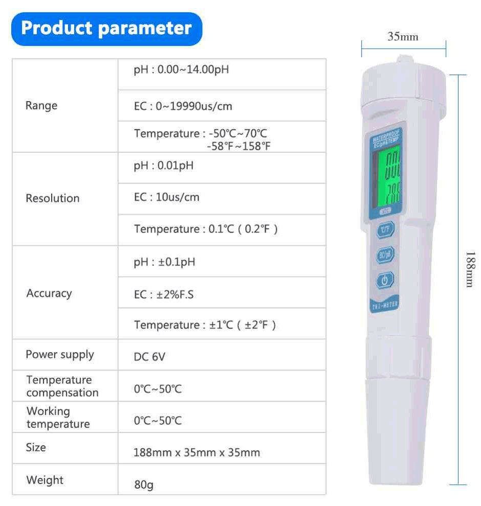 Stylo PH TEMP meter EC-3587 3 en 1